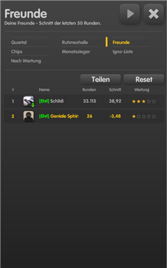 Die Liste der Mitspieler, die du positiv erlebt und entsprechend als "Freund" markiert hast, kannst du jederzeit einsehen über