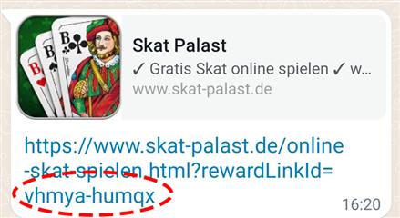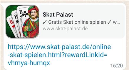 Zusammen mit dem Logo des Skat-Palastes bekommt man eine Internetadresse.