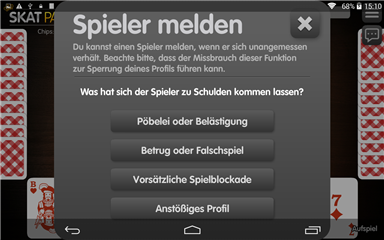 Wer den Spaß am Spiel durch grobe Unarten verdirbt, kann dem Skat-Palast gemeldet werden.
